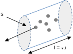 Si tomamos como longitud del cilindro la distancia recorrida por los electrones a una velocidad “v” en un segundo, esto es l=v.t (longitud o altura del cilindro).
