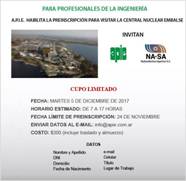 El pasado 5 de diciembre de este 2017 se llevó a cabo la visita a la Central Nuclear Embalse, en el marco de la extensión de vida útil de la central. Contamos con 9 asistentes entre ellos profesionales de ingeniería electrónica, ingenieros en telecomunicaciones, ingenieros biomédicos, Magister en física Medica, Arquitectas, Licenciados en seguridad e higiene, Licenciados en administración de empresas.
