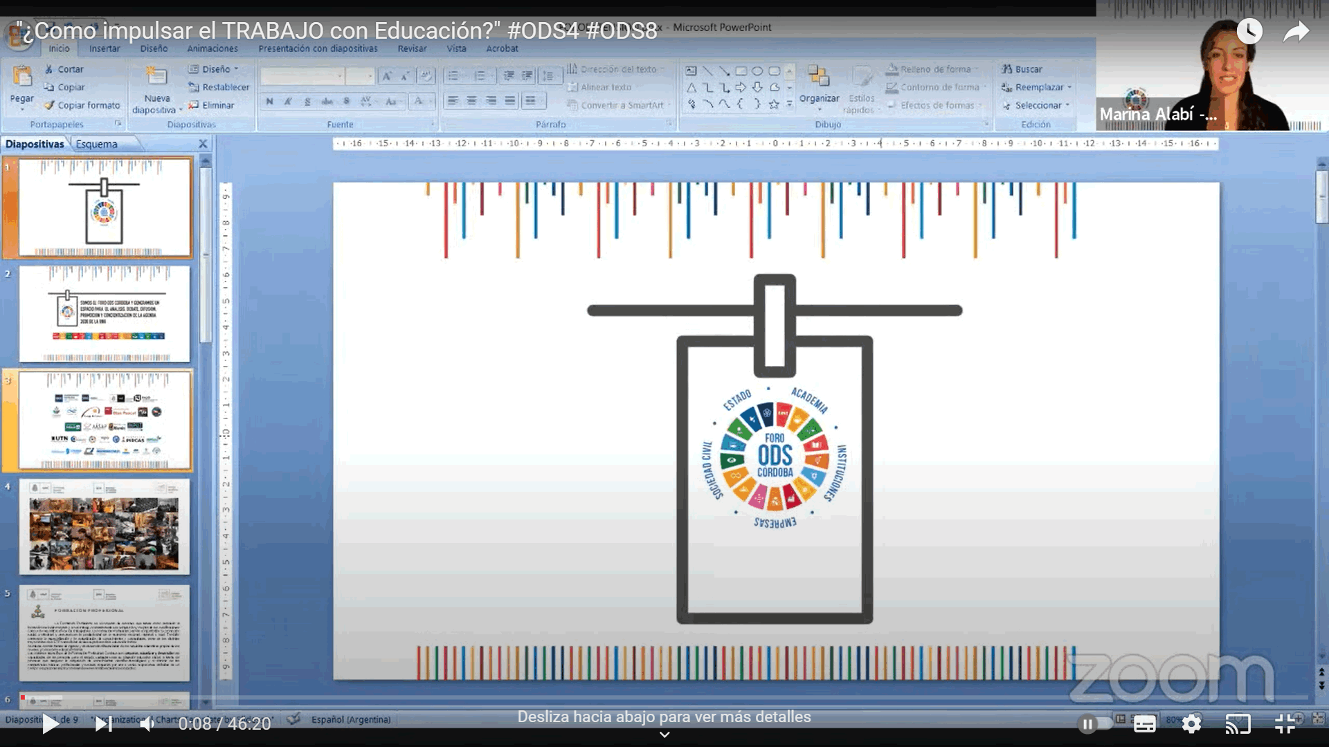 El 8 de Junio de 2023, el Foro ODS Córdoba se constituyó para la Reunión Nº 23, a través de la plataforma digital zoom, en la cual se participó de la charla "IMPULSAR TRABAJO CON EDUCACIÓN” (ODS 4 y ODS 8) a cargo del Arq. Agustín Sattler Coordinador de la Escuela de Oficios de la UNC
