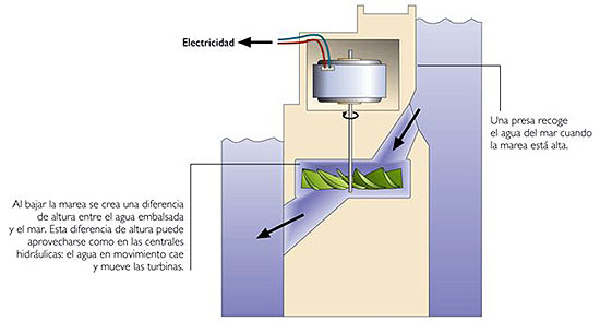 Precisamente las fuerzas de atracción gravitatoria entre la tierra, la luna y el sol permiten al ser humano aprovechar, cada vez en mayor escala, la denominada energía mareomotriz. También se desarrollan la energía térmica oceánica, que aprovecha la diferencia de temperatura de la superficie marina con la que se encuentra bajo los 100 metros; la energía de las olas, que usa el movimiento de boyas para activar generadores eléctricos; y la energía de las corrientes marinas, que consiste en instalar hélices-turbinas en las profundidades del mar.