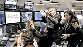 Además de los inconvenientes que la Máquina de Dios tuvo que superar para entrar en funcionamiento (ver "La revancha..."), ayer el arranque de los experimentos se frenó por un desperfecto mecánico. Según informó el CERN, una disfunción eléctrica activó el mecanismo de protección por el que las partículas aceleradas son retiradas automáticamente del anillo de aceleración. En ese lapso, la ansiedad colmó a los 2.000 científicos de 34 países y 170 universidades que participan del proyecto. Algunos de ellos, como los argentinos, no pudieron estar en el CERN pero se las arreglaron para ver la colisión en tiempo real por la Web. En La Plata, y al igual que sus colegas de todo el mundo, María Teresa Dova, física de la Universidad de La Plata, pasó la trasnoche interconectada con el CERN a la espera de que ocurriera el choque junto a sus colegas Martín Tripiana y Fernando Monticelli.