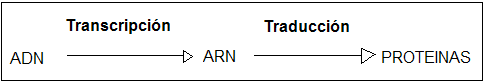 Pero ahora queda otro asunto por explicar: ¿Qué entendemos por genoma? El genoma es el conjunto de información genética o ADN que posee un organismo en particular. El tamaño del genoma guarda estrecha relación con la complejidad del organismo. El ADN se trata de un código que consiste en la combinación de distintas moléculas, responsables de que cada organismo sea único(1). Según el dogma de la biología molecular, el ADN contiene la información genética que será copiada o transcripta en el ARN (2) y posteriormente traducida para la síntesis de una proteina (3), según muestra el recuadro.