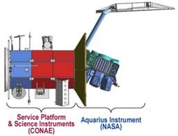 - El Instituto Argentino de Radioastronomía (IAR) y la Facultad de Ingeniería de la Universidad Nacional de La Plata (FI-UNLP) aportan un radiómetro de microondas, para medir la velocidad superficial del viento, vapor de agua y contenido de agua en las nubes sobre los océanos, concentración de hielo marino con el fin de proveer parámetros geofísicos relevantes aplicados a pronósticos climáticos e hidrológicos orientados a estudios regionales, así como también contribuir a la determinación de la Salinidad Superficial de los Mares (SSM) obtenida por el instrumento Aquarius de la NASA.