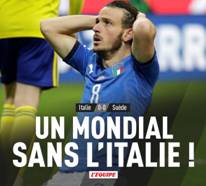 "Italia fuera del Mundial: con Suecia es 0-0. No sucedía desde 1958, lágrimas azzurra", dijo por su parte "La Reppublica", que destacó las palabras del portero Gianluigi Buffon, que no seguirá en "La Nazionale". "Lamento que el último juego oficial sea coincidente con la eliminación", dijo Buffon, que buscaba disputar su sexto Mundial.