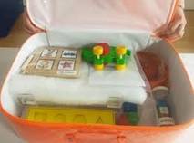 El set se divide en dos pequeñas valijas. Una que tiene los elementos de estimulación, juegos y evaluación para usar con bebés de 0 a 12 meses, y otra para los niños de 12 a 24 meses. Deriva de un método que utilizan los pediatras llamado Cat Clams, pero está modificado y adaptado para que puedan usarlos los padres.