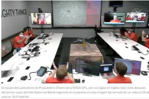 "Los datos del altímetro confirman que Ingenuity ha realizado el primer vuelo de un aparato propulsado en otro planeta", anunció un ingeniero del Laboratorio de Propulsión a Reacción mientras la sala de control de la agencia aeroespacial vitoreaba.