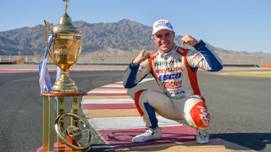 Recibiendo la bandera de cuadros en el Circuito El Villicum (Prensa ACTC).