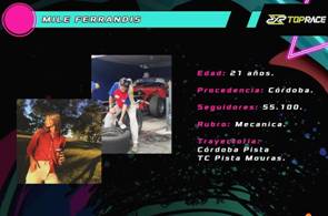 Es cordobesa, tiene 21 años, es técnica agropecuaria, estudia veterinaria, hace equitación, causa furor cada vez que sube algo en Tik Tok y, desde este fin de semana, será oficialmente una de las mecánicas del primer equipo integrado sólo por mujeres que competirá en el Top Race Junior. Mile Ferrandis, de ella se trata, hace historia con el Vitarti Girl\'s Team, la nueva escudería que este fin de semana iniciará su participación en la categoría que abre su temporada en el Oscar y Juan Gálvez de Buenos Aires.