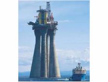 La base y la plataforma se construyeron por separado y después fueron transportadas a unos 80 km de la costa por diez remolcadores controlados por ordenador. Allí fueron acopladas. Para que la estructura no se hundiese durante el traslado, la línea de flotación tuvo que alinearse con el centro de gravedad, lo que se logró usando tanques de aires. Llegados al punto de extracción, en un viaje que duró una semana, primero se sumergió un poco la base hasta situarla en la posición requerida y, seguidamente, se acoplaron las patas. Dada la dificultad que existe de mover y ensamblar piezas de ese gigantesco tamaño, la tarea resultó extraordinariamente compleja –tuvieron que emplearse de forma simultánea gran cantidad de sensores– y tardó varios días en ser completada.