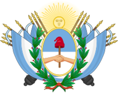 Por último, la cinta en forma de moño (otro signo de unión) con los colores azul (en este caso: azul-celeste) y plata (blanco), los mismos de los cuarteles del escudo, representan la nacionalidad argentina que se emblematiza en los colores de un cielo diurno. Está rodeado de una rama de laurel y otra de olivo.