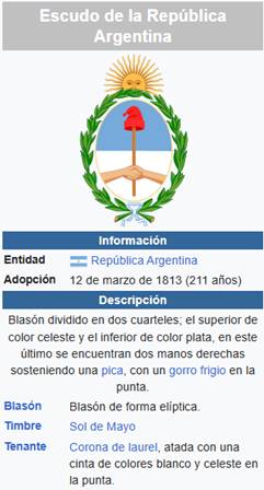 El Escudo de la República Argentina fue aceptado oficialmente el 12 de marzo de 1813 por la Asamblea General Constituyente de ese año. Aun así, se conservan documentos emitidos por la Asamblea que testimonian que antes de conocerse el decreto que aprobara su diseño ya se empleaba el actual escudo, habiéndose utilizado con anterioridad a este el escudo de armas del Virreinato del Río de la Plata.