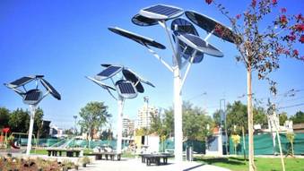 Se trata de originales estructuras metálicas con paneles que proveen de energía a los espacios públicos donde funcionan y a los transeúntes. Árboles solares en Argentina, Árbol solar en Israel.