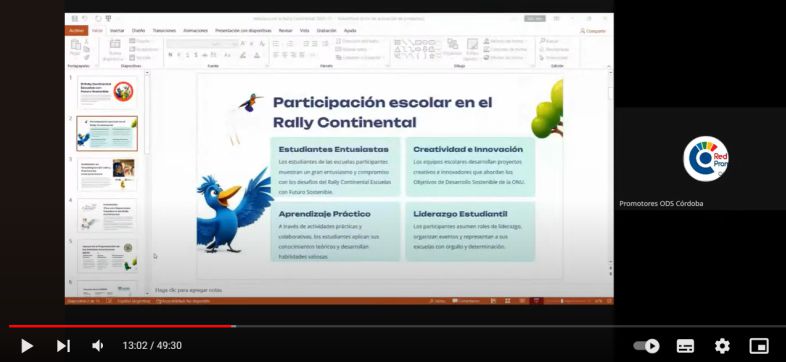 El 11 de Abril de 2024, el Foro ODS Córdoba se constituyó para la Reunión Nº 02-2024, a través de la plataforma digital Google Meet, en la cual se participó de la charla "Rally Continental 2024: Escuelas con Futuro Sostenible" (ODS 4 y ODS 11) a cargo de Fernando Garcia Garcia, Director Ejecutivo en la Fundación Vive con Esperanza quien explorará las diversas oportunidades de participación y colaboración en el Rally Continental 2024, centrándose en el desarrollo de escuelas con un enfoque sostenible para contribuir a la construcción del patrimonio interamericano.