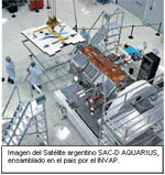 Cerca de la sala limpia de Invap, en San Carlos de Bariloche, donde se ensambla el nuevo satélite argentino SAC-D Aquarius, se presenció el anuncio tecnológico del año y se dialogó con el canciller Jorge Taiana, el ministro de Ciencia y Tecnología, Lino Barañao, y el director técnico de Conae (Comisión Nacional de Actividades Espaciales), Franco Varotto.
