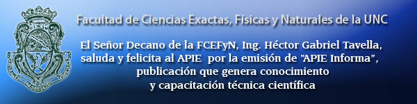 APIE Informa se distribuye gratuitamente a asociados al APIE, miembros del área tecnológica, Universidades de Córdoba, Asociaciones y Colegios Profesionales Universitarios de Córdoba, Cámaras Empresarias y Medios de Comunicación.